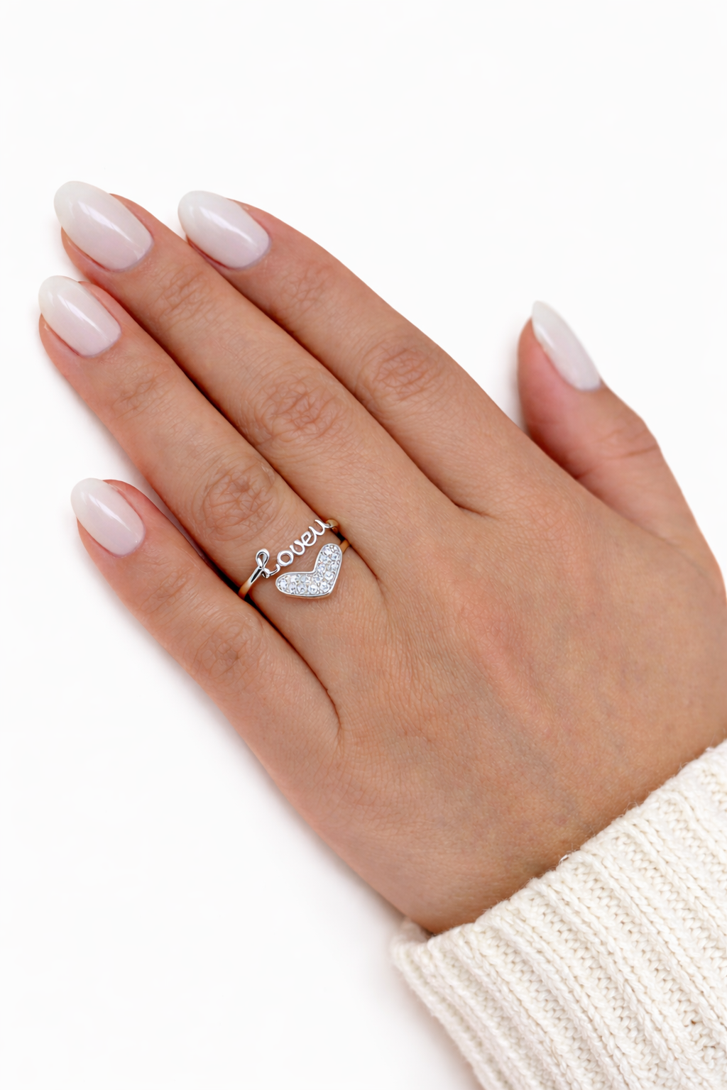 Anel Love Coração Cravejado – Banhado a Ródio Branco, Regulável e Antialérgico