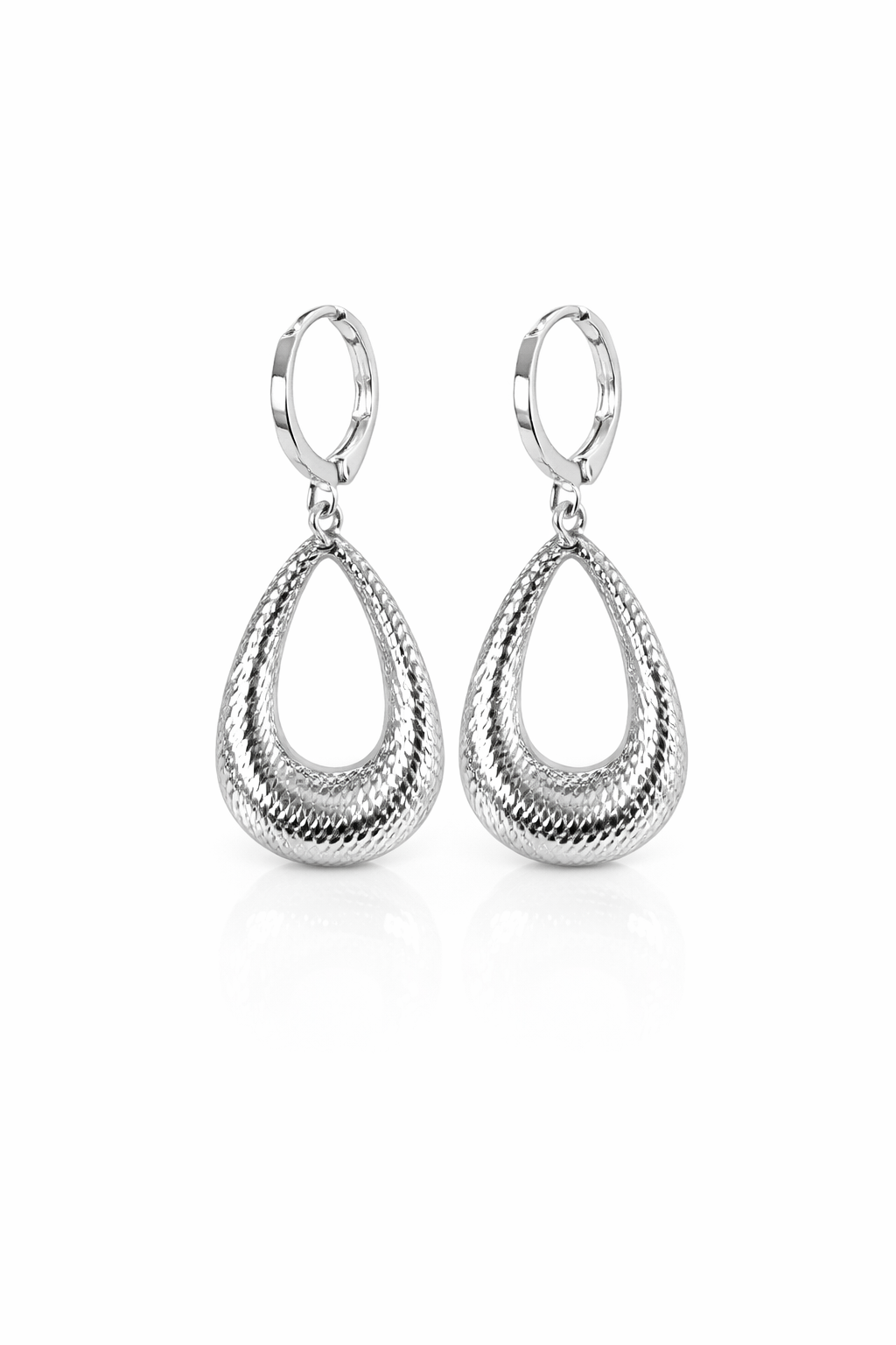 Brinco Click Gota Vazada Banhado a Ródio Branco