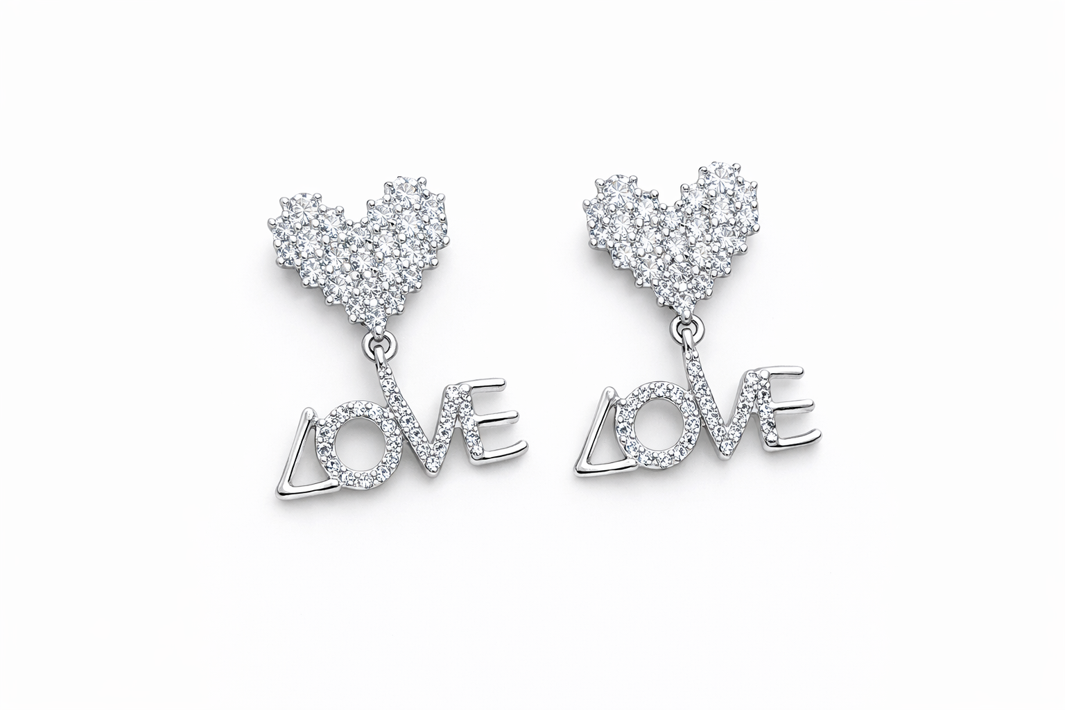 Brinco Coração Love Cravejado Banhado a Ródio Branco