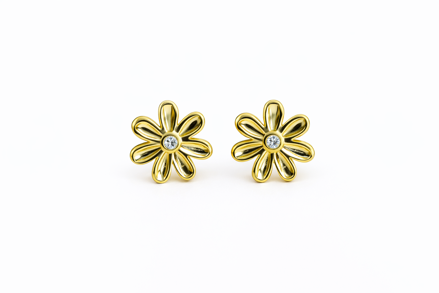 Brinco Flor Ponto de Luz Banhado a Ouro 18K