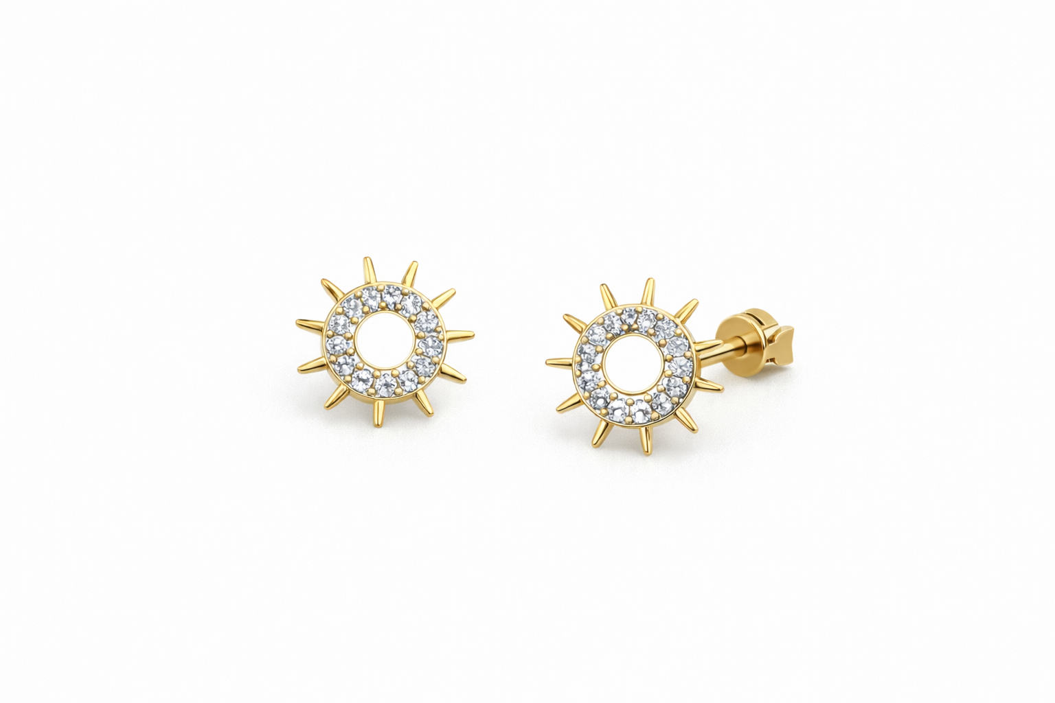 ✨ Design delicado e atemporal em formato de sol cravejado