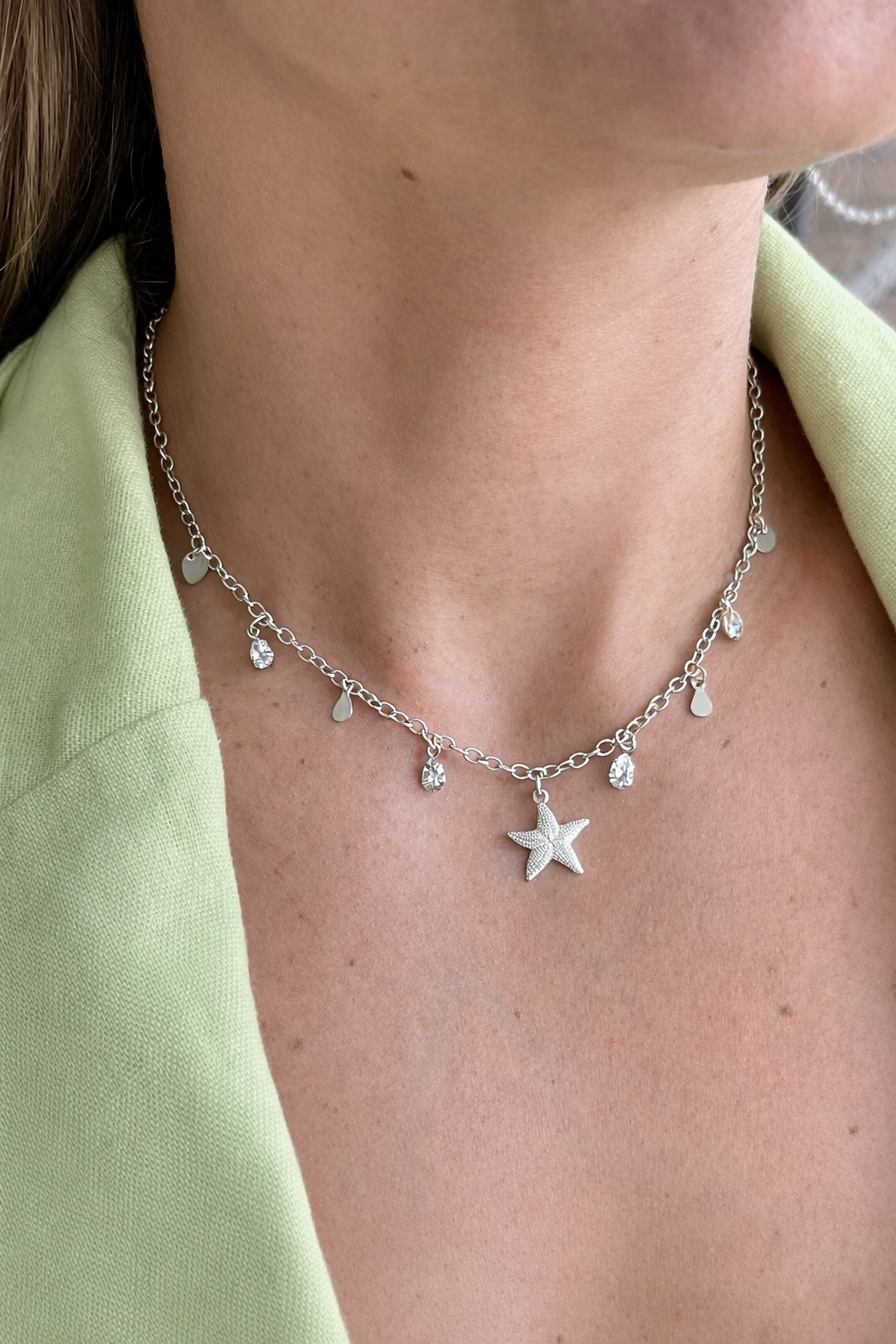 Esta choker traz o charme de uma estrela delicada acompanhada por gotas de Zircônias, que iluminam o visual com sofisticação e modernidade. O banho em ródio branco valoriza o design, garantindo brilho intenso e acabamento elegante.