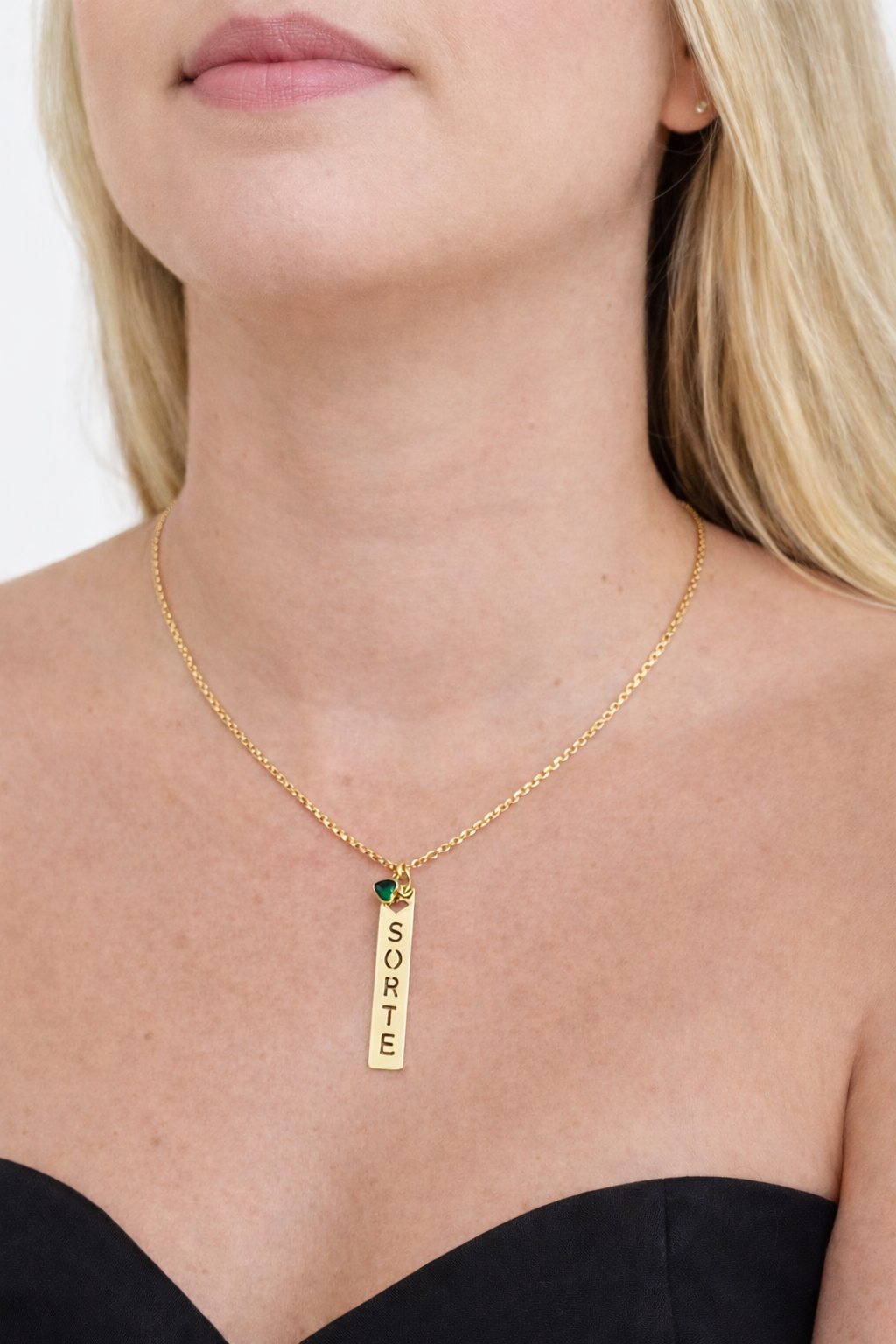 Colar Sorte com Pingente Coração Verde Banhado a Ouro 18K